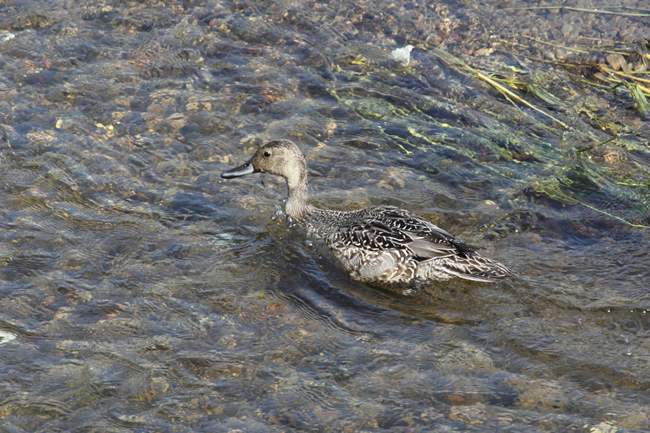 オナガガモ オナガガモ(2)→10月18日(日)柳瀬川。そのうちのオスの写真です。まだ冬羽で、オス独特の模様は見えませんが、くちばしをよく見ると確かにオスです[山崎]